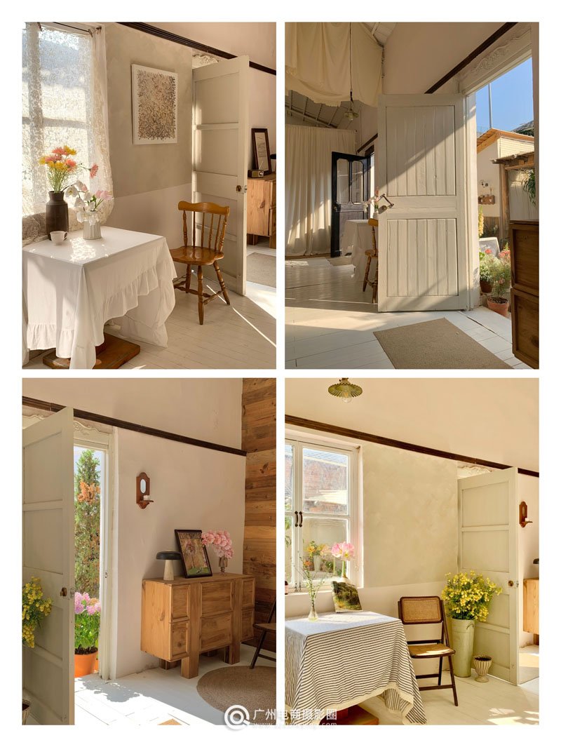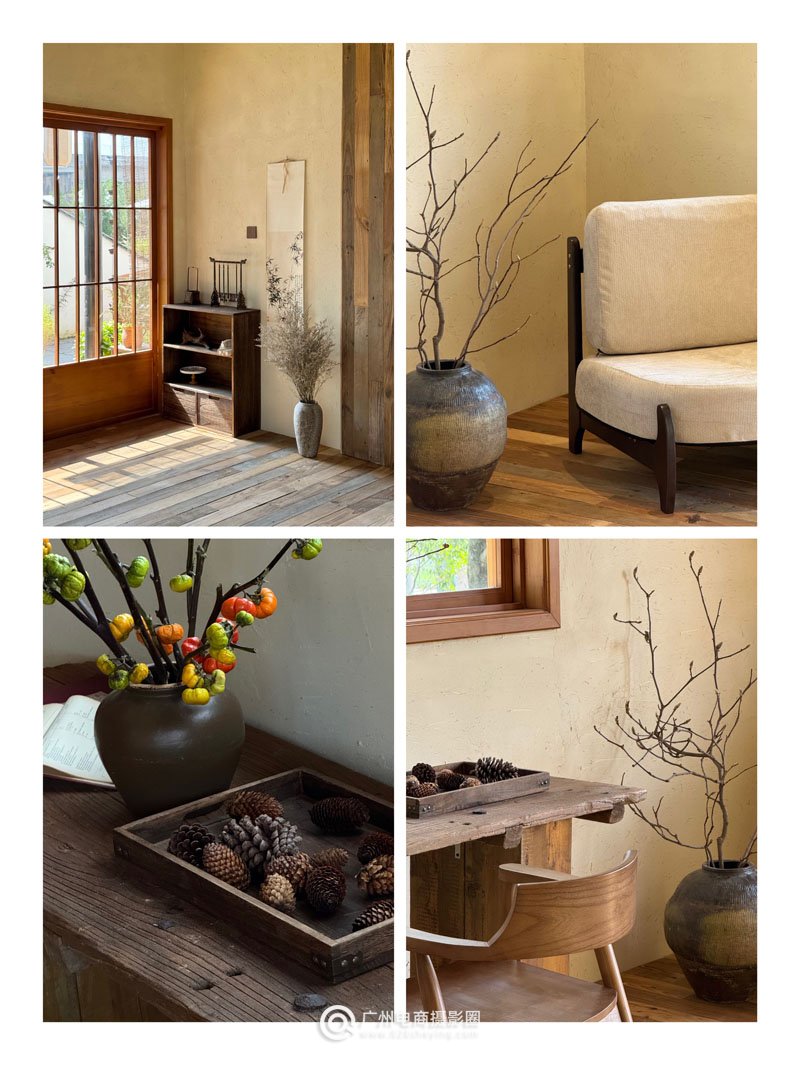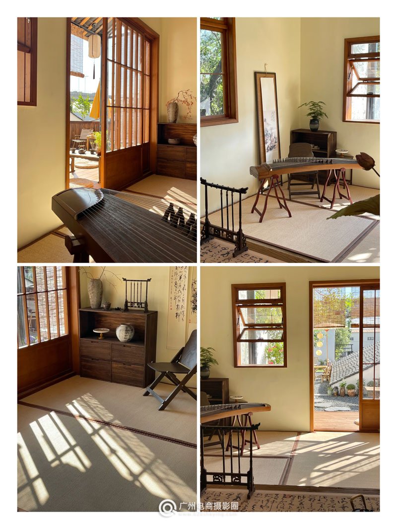 广州最真实柔和的国风小院,充满着生活气息,不是民宿是摄影基地!小青瓦三角屋顶座落在中式庭院里,犹如到了江南。瓦檐木地台搭配枫树、竹子、花卉、油纸伞、竹桌椅、茶具等…即自然又高级的古风韵味。室内以东方禅意茶室、中古侘寂空间为主,温柔而有质感,简朴又不失调性。在国风的基础上又结合当下流行的中古法式客厅、轻复古欧式钢琴房、田园木屋花园等多元素多场景,提供给大家更多选择。欢迎商拍、写真、视频、活动等预约合作!