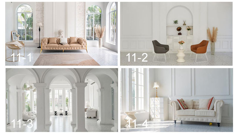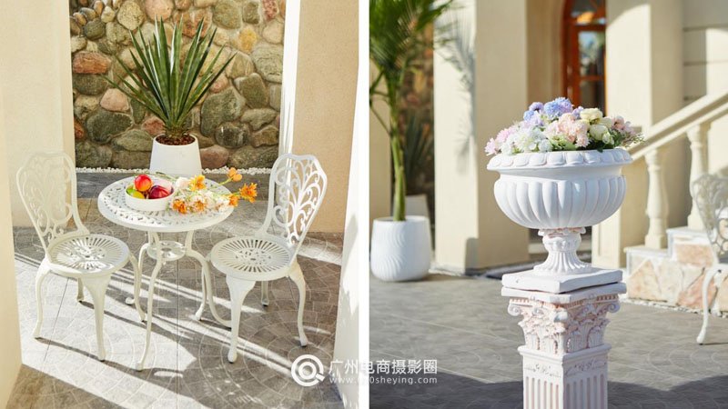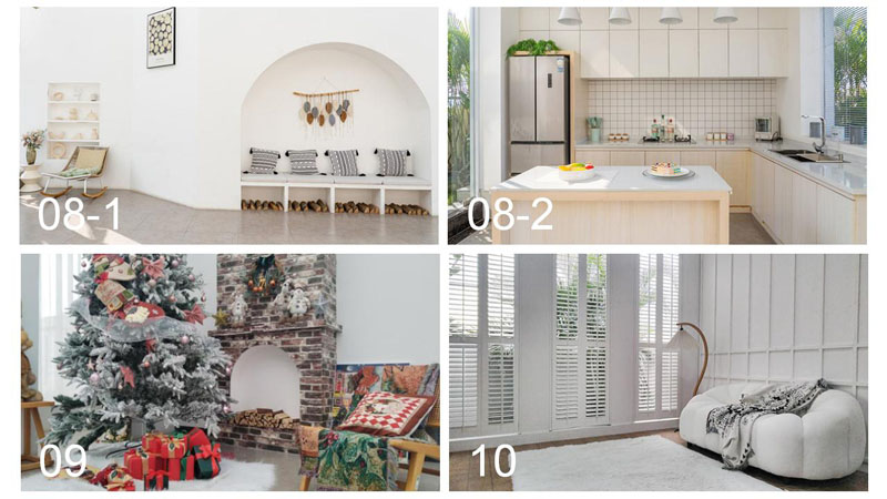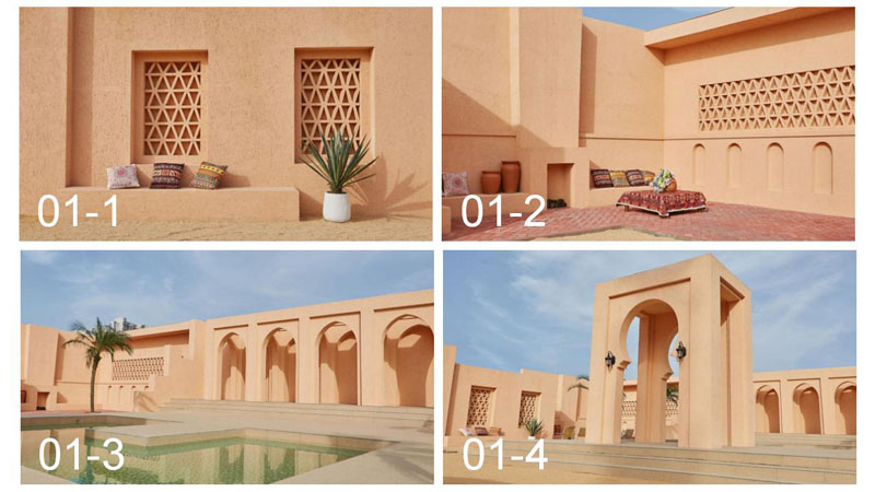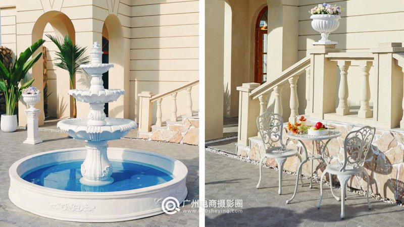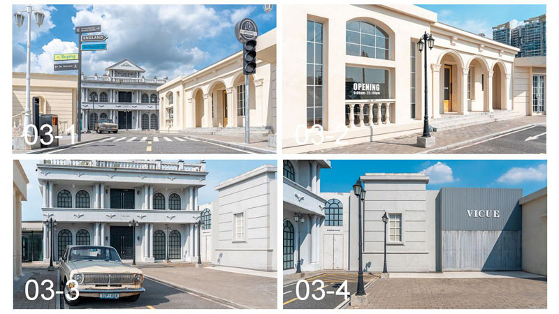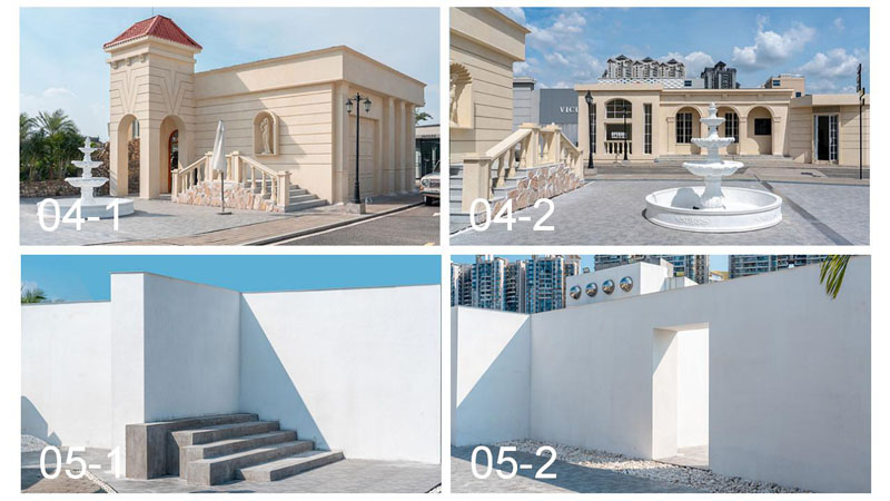 度假风场景、简艺术空间、欧式罗马柱、中东沙漠等为主要场景。